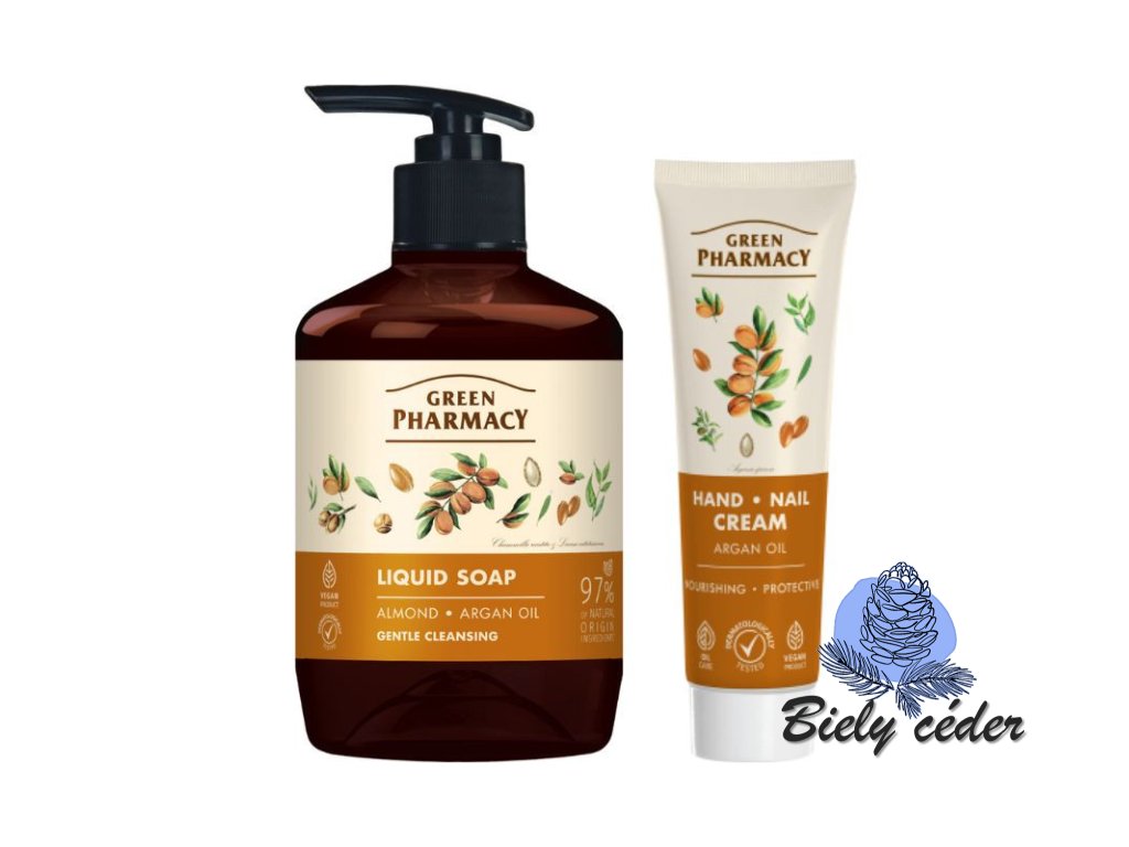 Tekuté mydlo obohatené o mandľový a argánový olej, určené na udržiavanie čistých a sviežich rúk každý deň. Účinne čistí, vyživuje pokožku, zabraňuje jej vysušovaniu a poskytuje pocit pohodlia pri každom umývaní rúk. Krém na ruky s argánovým olejom hydratuje a zjemňuje pokožku, dodáva jej elasticitu a tiež chráni nechty pred lámaním.