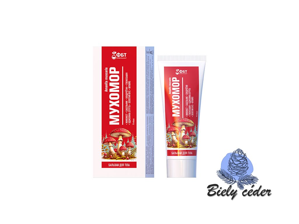 Telový balzam Muchomor je aktívny a hrejivý prostriedok na báze extraktu z muchotrávky. Obsahuje chondroitín, glukozamín a rastlinné extrakty, ktoré sa navzájom dopĺňajú a majú regeneračné vlastnosti. Balzam zmierňuje bolesť, zápaly kĺbov a svalov, zlepšuje krvný obeh a podporuje regeneráciu tkanív. Vďaka silnej kombinácii prírodných zložiek poskytuje rýchly a dlhotrvajúci hrejivý účinok.
