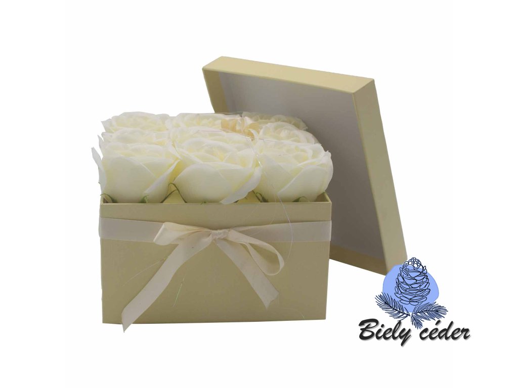 Darčekový box mydlových kvetov - 9 krémových ruží