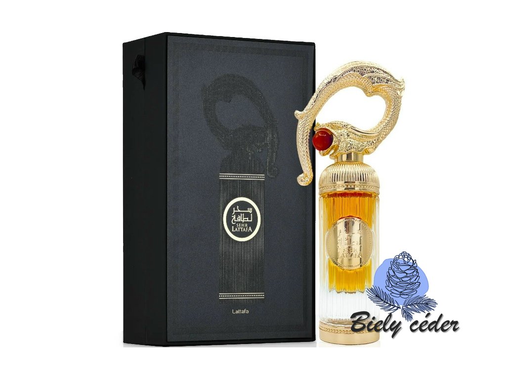 Lattafa Sehr je unisex parfémová voda, ktorá očarí milovníkov zmyselných korenistých a sladko-drevnatých vôní. Úvodnú fázu otvára kombinácia škorice a horkej mandli, ktorá je zároveň exotická, útulná a príťažlivá. Následne srdce rozvinie bohatú kompozíciu z jazmínu, pomarose™ (akord pripomínajúci ružu a jablko) a akigalawoodu, ktoré dodávajú vôni komplexný a zaujímavý charakter. Základ tvorí vanilka absolute, ambra a tonka fazuľa, ktoré zanechajú teplú, sexy a dlhotrvajúcu stopu.