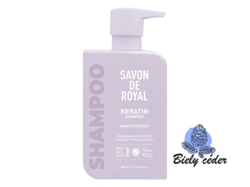 Bez sulfátov, SLS/SLES. Vegan. Šampón s keratínom je navrhnutý špeciálne na zlepšenie stavu suchých, poškodených a kučeravých vlasov. Vďaka svojmu silnému zloženiu posilňuje vlasy, stará sa o pokožku hlavy a zvýrazňuje kučery . Šampón Savon De Royal Miracle pastelovej série s keratínom poskytuje vlasom potrebnú urgentnú starostlivosť. Uhladzujúci šampón je určený pre poškodené vlasy. H ĺbkovo čistí vlasy, zanecháva ich hodvábne jemné a znižuje ich vypadávanie. Receptúry SAVON DE ROYAL, určené pre špecifické potreby vlasov, vyživujú vlasy pokročilými aktívnymi zložkami a viditeľne zlepšujú ich stav.