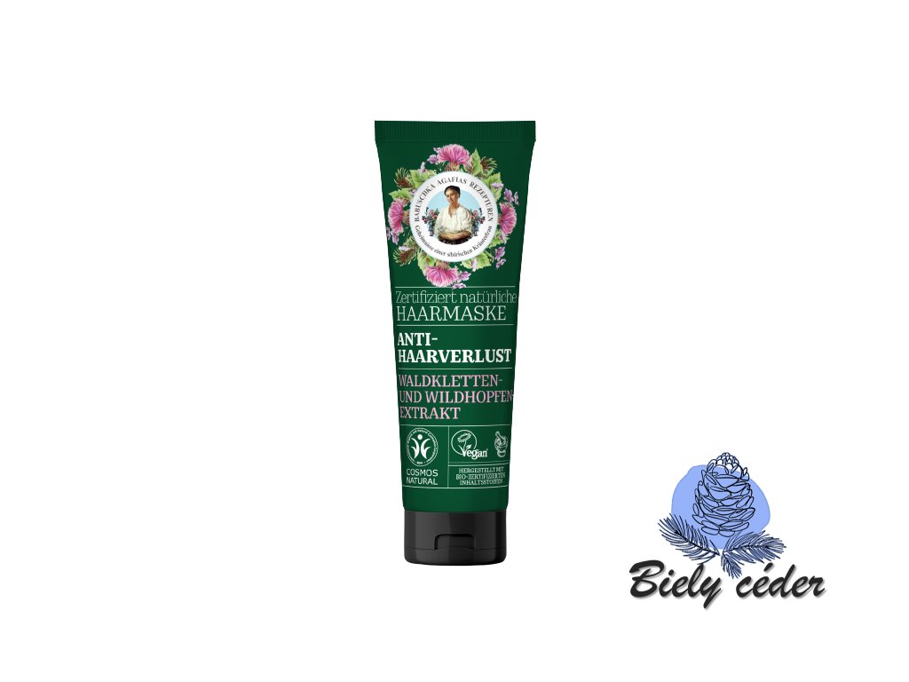 Táto prírodná maska na vlasy pomáha bojovať s vypadávaním vlasov. Extrakty z lopúcha a chmeľu obsahujú dôležité vitamíny B, A, E, C a mastné kyseliny, čím zabezpečujú optimálnu starostlivosť, posilňujú vlasové korienky, redukujú vypadávanie vlasov a zlepšujú ich rast.